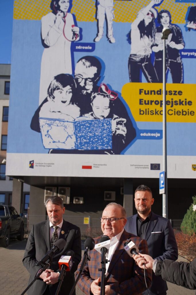 – Odsłaniamy mural promujący fundusze europejskie dla Dolnego Śląska na lata 2021 – 2027. To pieniądze wpływające na poprawę jakości codziennego życia mieszkańców. Pozwalają inwestować i rozwijać między innymi kolej, edukację i służbę zdrowia. Jako region jesteśmy jednym z liderów w wykorzystywaniu tych środków, ponieważ zajmujemy drugie miejsce pod względem podpisanych umów oraz liczby ogłoszonych naborów – mówi wicemarszałek Michał Rado.
