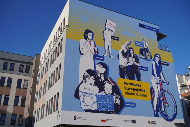 Na budynku Starostwa Powiatowego we Wrocławiu pojawił się mural promujący Fundusze Europejskie dla Dolnego Śląska. Kolorowa grafika ma przypominać mieszkańcom regionu, że środki Unii Europejskiej realnie wpływają na jakość ich codziennego życia.