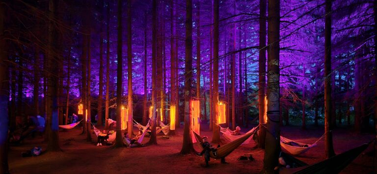 W cenie podstawowego biletu otrzymujecie pełny dostęp do wszystkich siedmiu scen muzycznych, pole namiotowe, toalety i prysznice z ciepłą wodą. To już spory komfort jak na festiwal w lesie. Dodatkowo można dokupić opcje glampingu dla tych, którzy wolą większą wygodę od tradycyjnego namiotu.