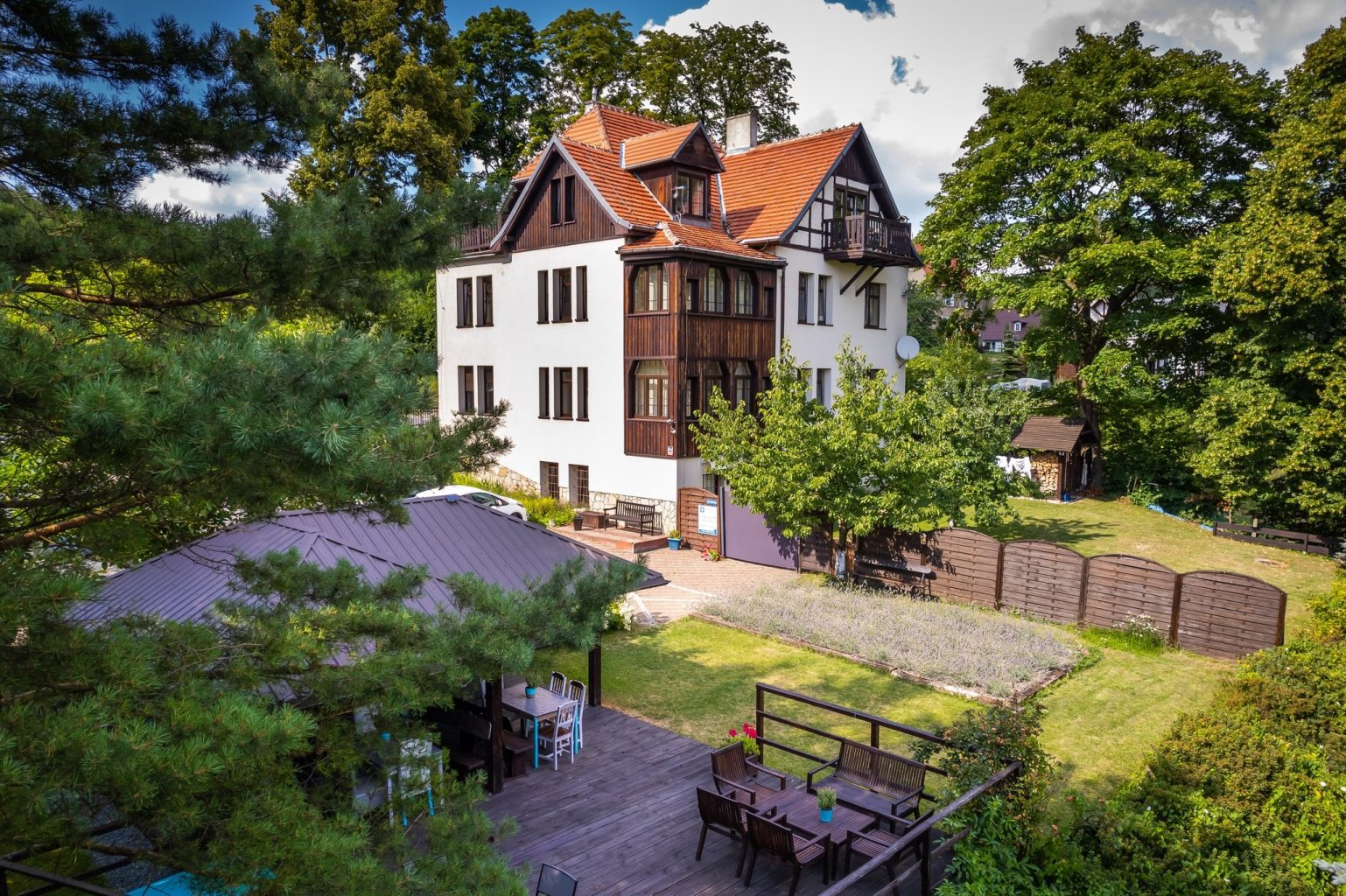 Willa Kwiaty Polskie w Jedlinie – Zdroju to połączenie atmosfery Belle Epoque z komfortem nowoczesności. Kameralny, przyjazny klimat oraz niebanalnie urządzone wnętrza pozwalają na przyjemny relaks, złapanie oddechu i oderwanie się od codzienności. Zaprasza Marzena Mroczkowska – Orpel. Poznajcie jej królestwo. Kameralna, zatopiona w zieleni willa leży na malowniczym zboczu wzgórza. Rozciąga się z niej piękny widok na Góry Sowie i Stołowe.